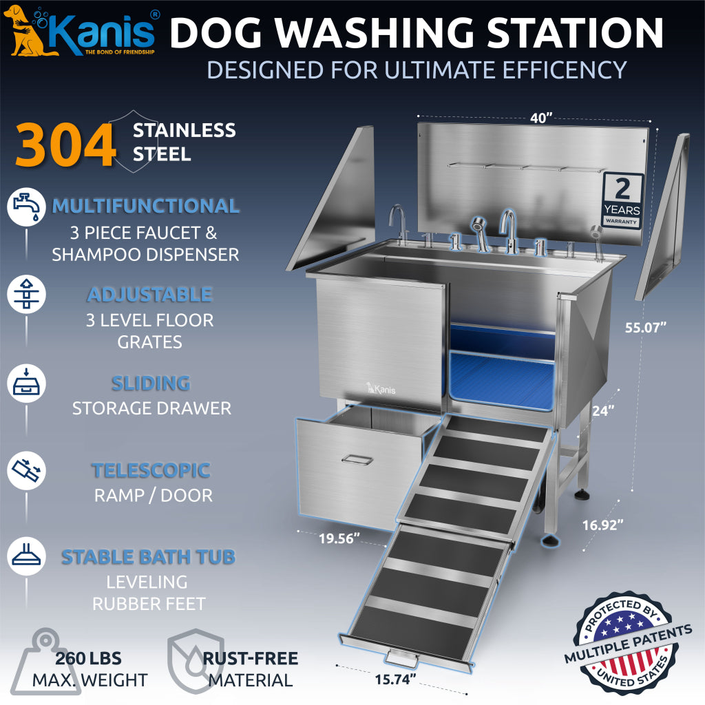 KANIS - Professional Stainless Steel Dog Bathing Station